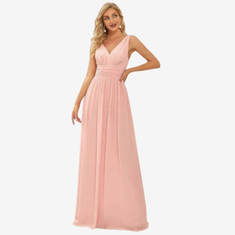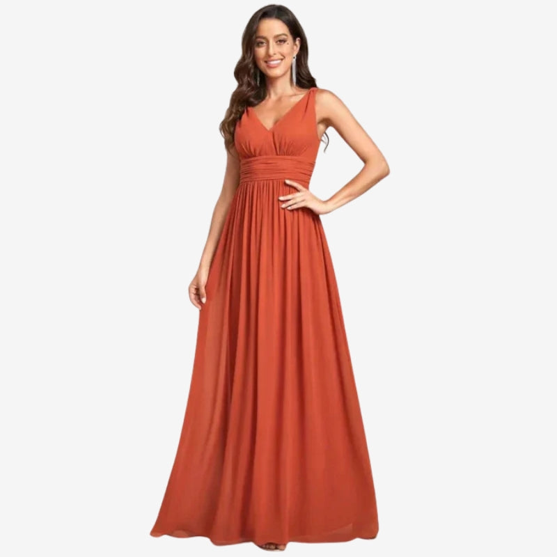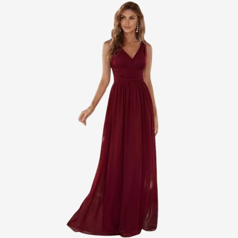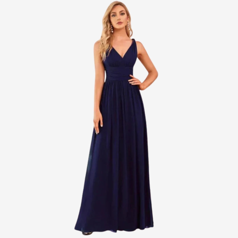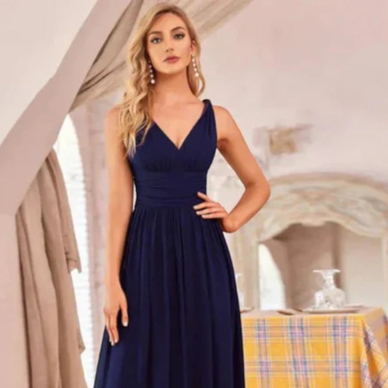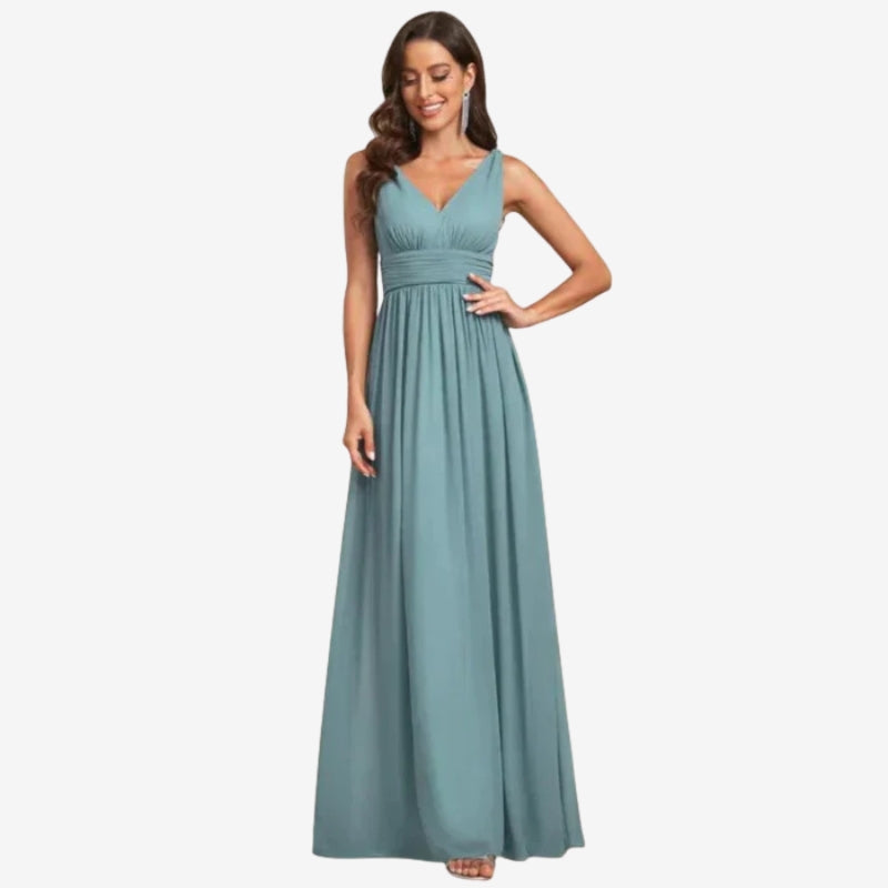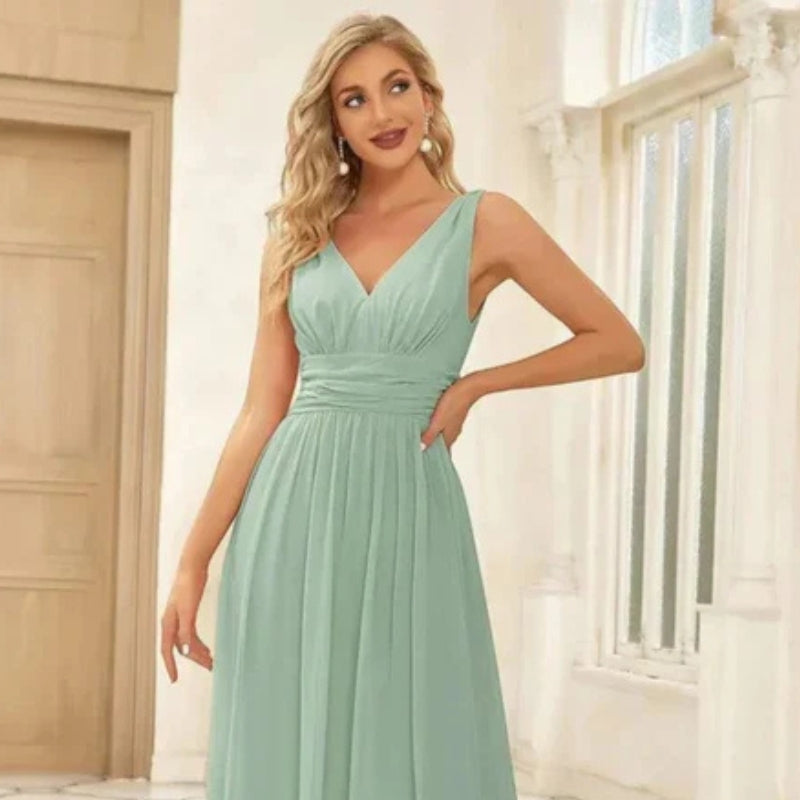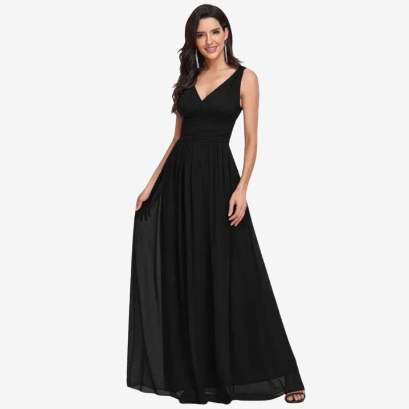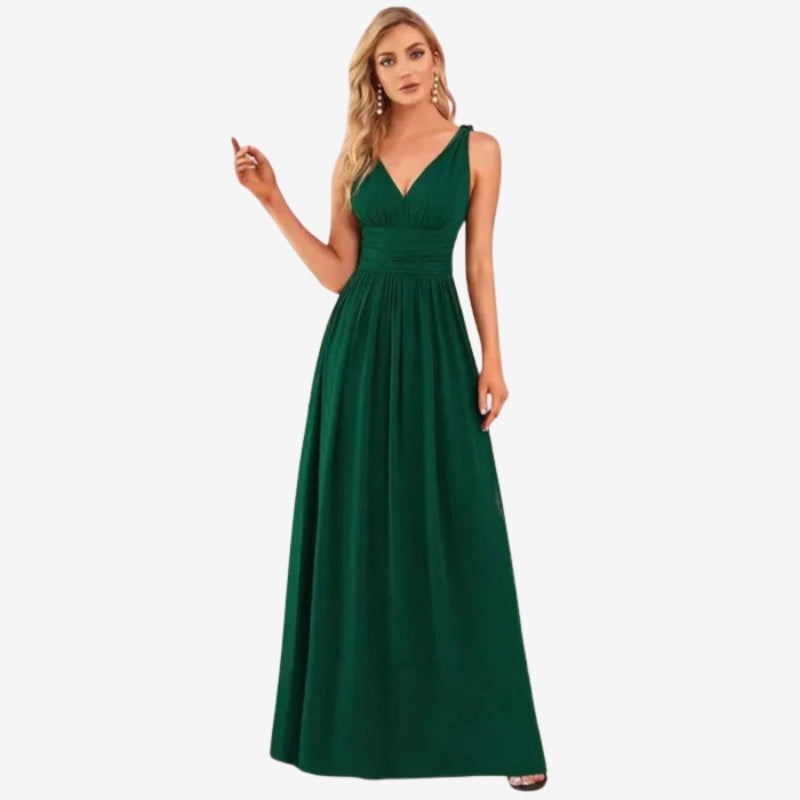 Nora – Abito lungo senza maniche con scollo a V e vita plissettata