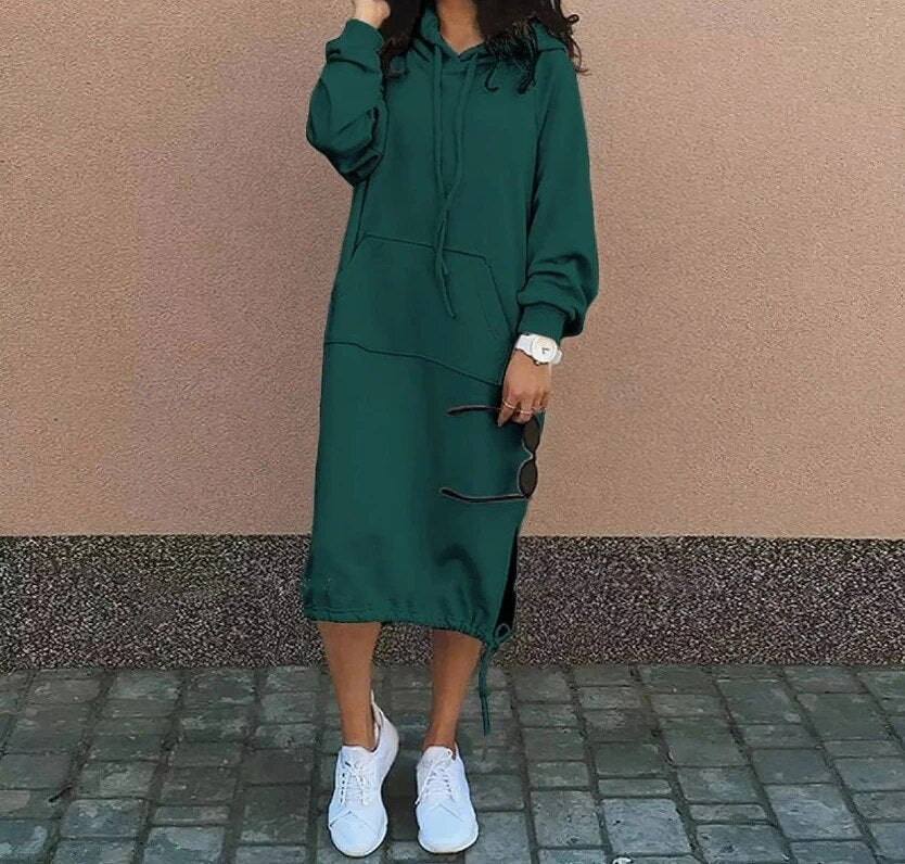 Sadie - Versatile abito con cappuccio, maniche lunghe e tasche