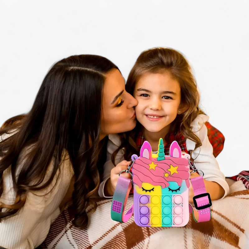 La borsa Amelia Pop combina divertimento e funzionalità in un design giocoso realizzato in silicone di alta qualità. La sua superficie a bolle pop offre un feedback tattile piacevole, mentre la tracolla regolabile la trasforma in una mini-borsa portatile, perfetta per l'uso in movimento. Questa borsa anti-stress è resistente, facile da trasportare e ideale sia per bambini che per adulti.