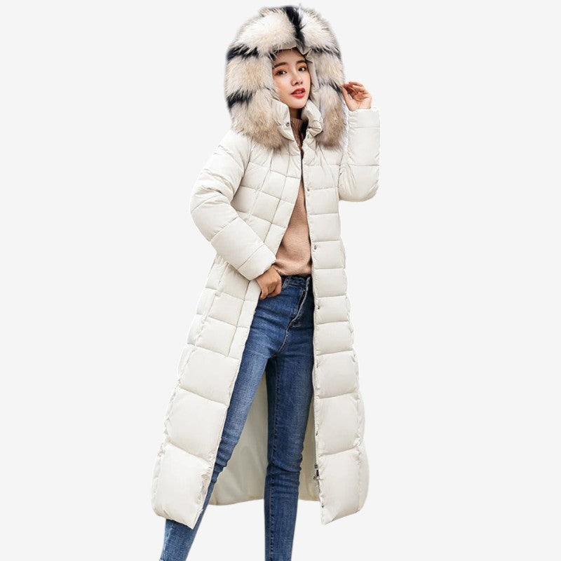 Ce manteau présente des manches longues et une coupe ample. Il dispose d’une fermeture zippée à l’avant, d’une capuche attachée, d’une poche sur un côté et d’un ourlet droit sur le bas.