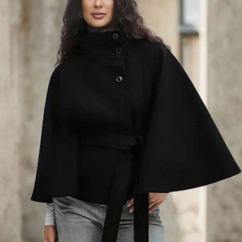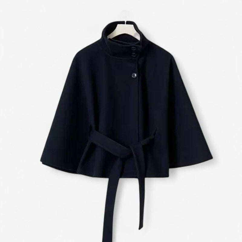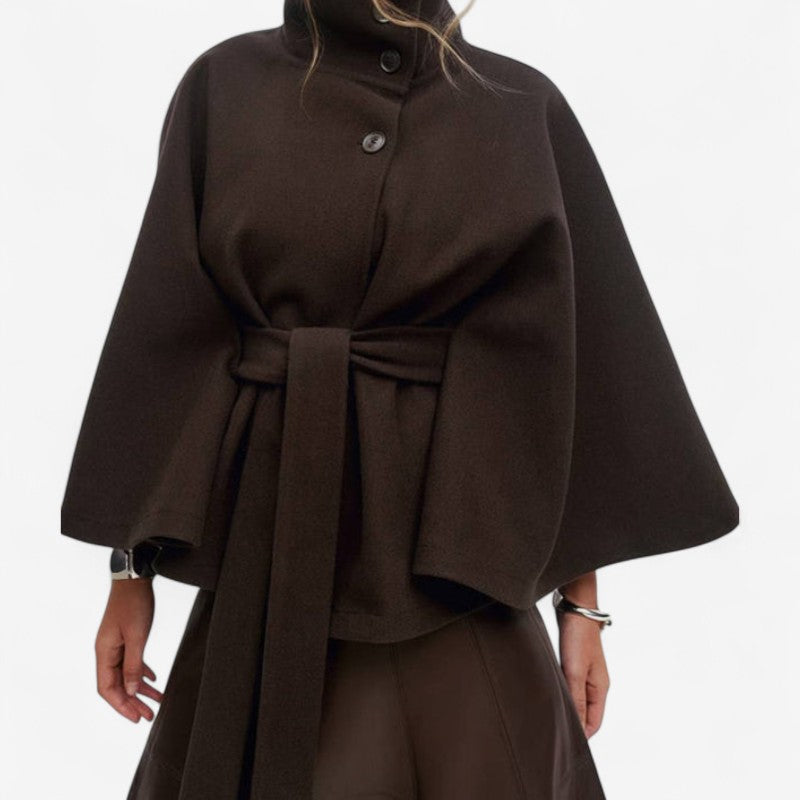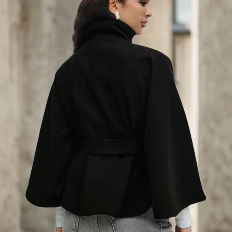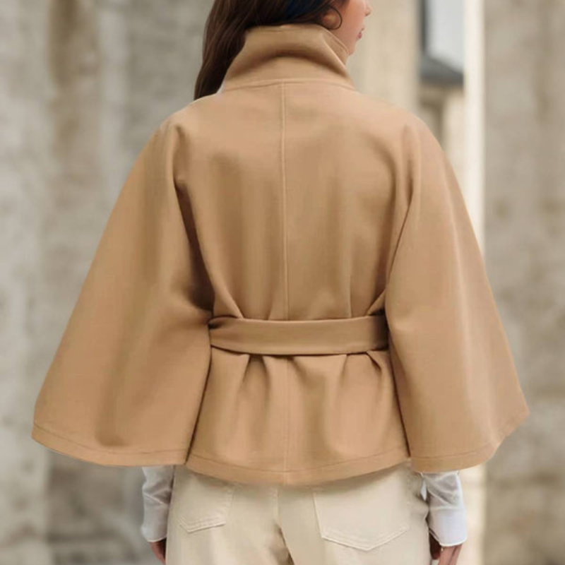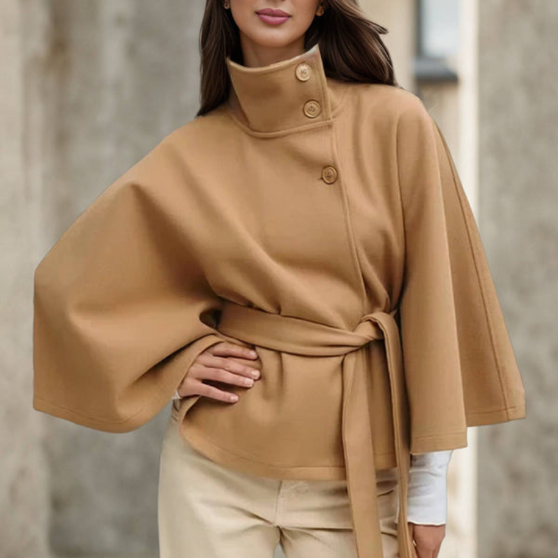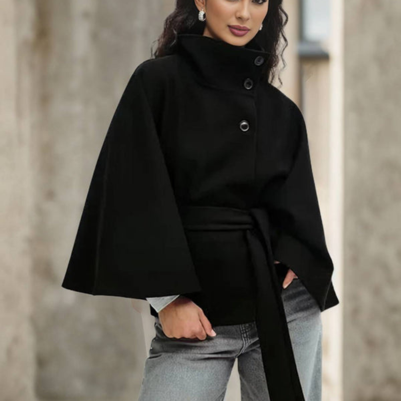 Angela – Cappotto con collo alto, cintura e maniche a mantella