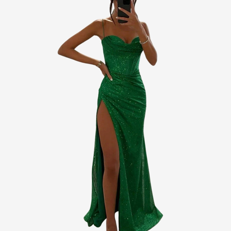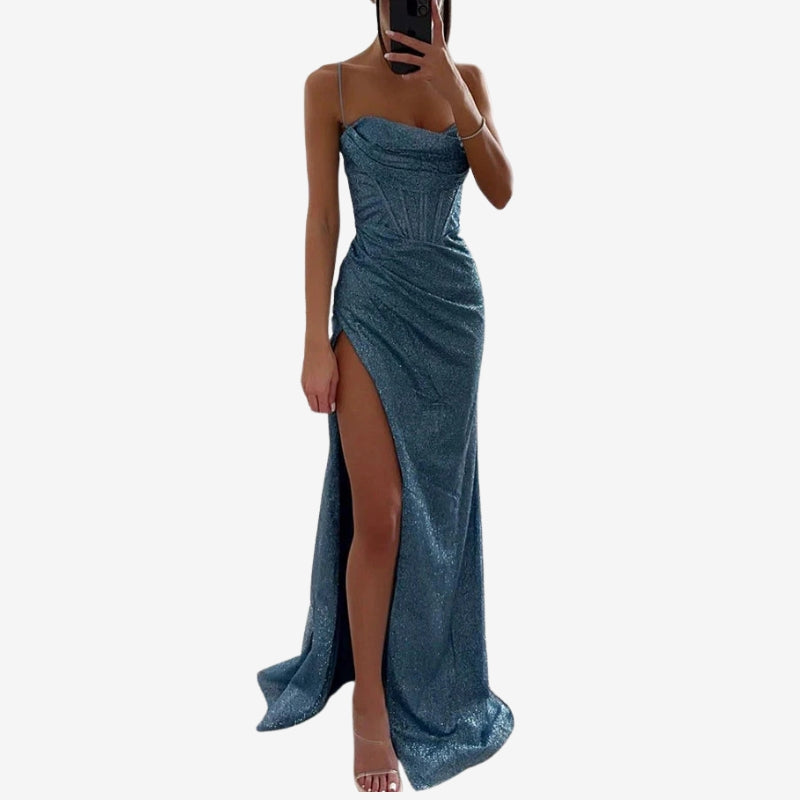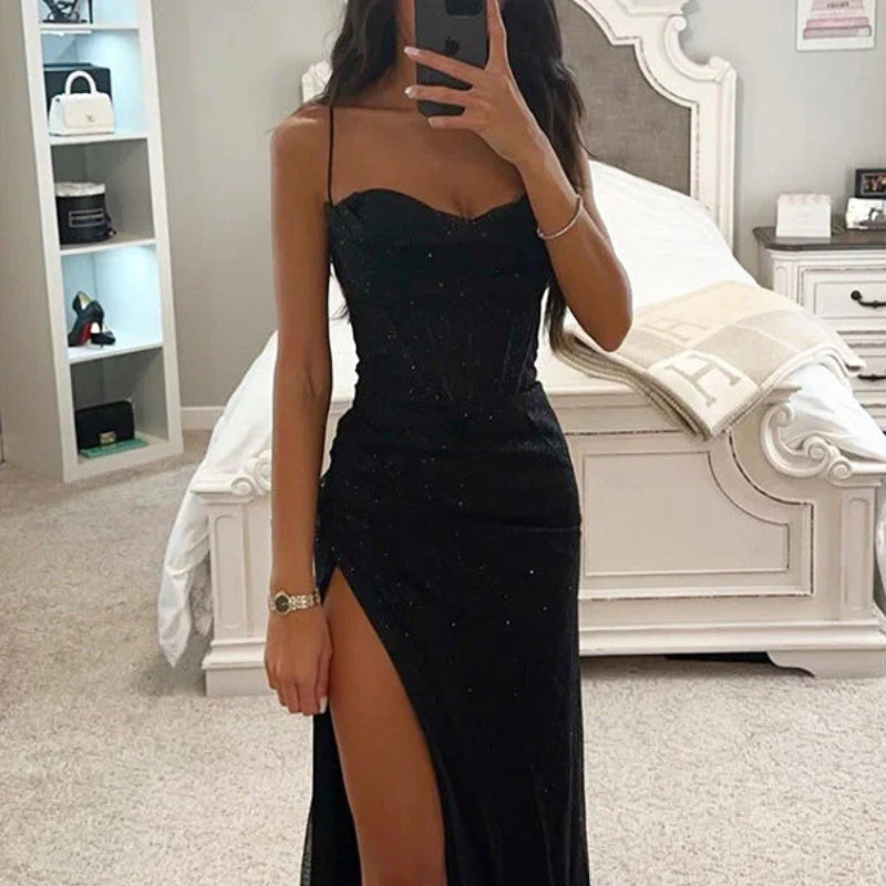 L'abito Anna senza maniche presenta spalline sottili e uno spacco laterale, che esaltano la silhouette. Il suo design semplice ed elegante lo rende perfetto per le uscite informali o per le occasioni quotidiane.
