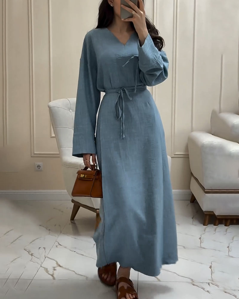 Annie - Elegante abito lungo con scollo a V e cintura abbinata