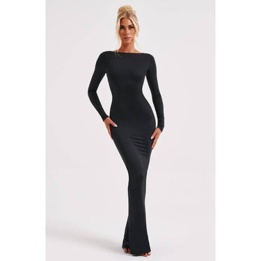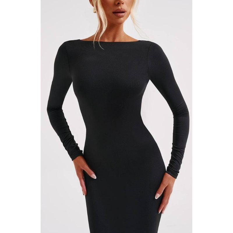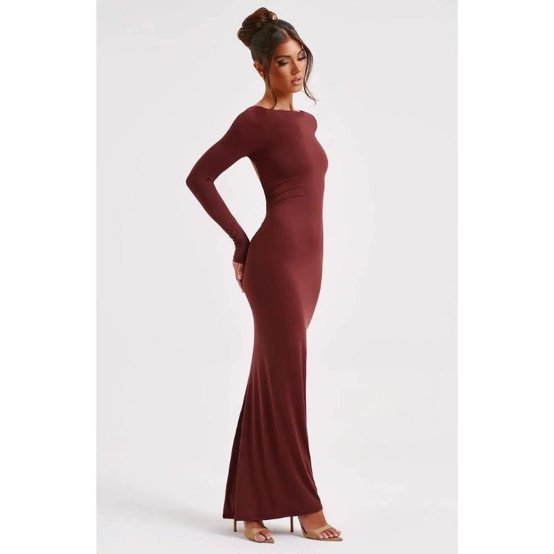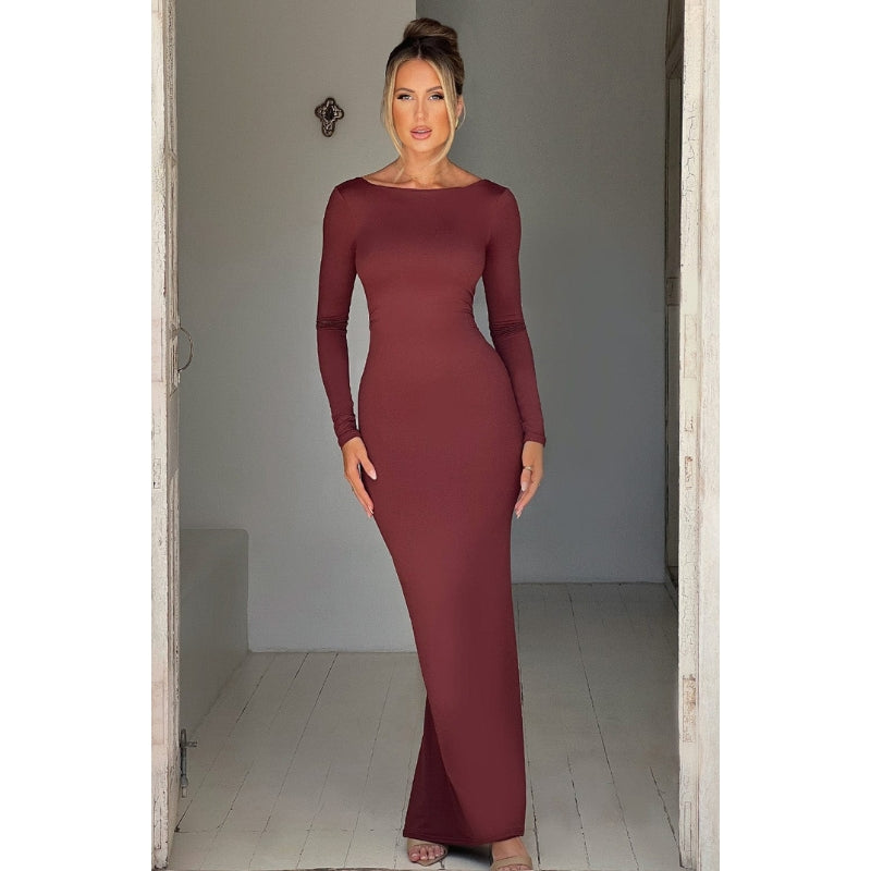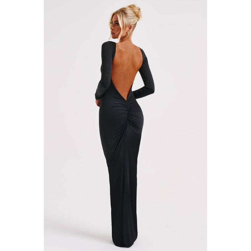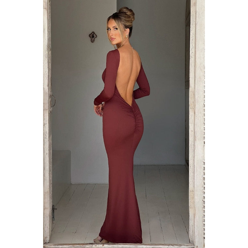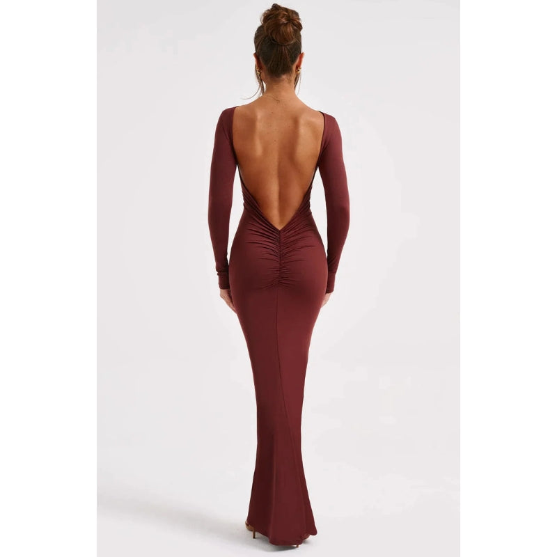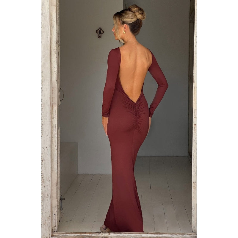 Anya – Elegante abito lungo con schiena scoperta e maniche lunghe