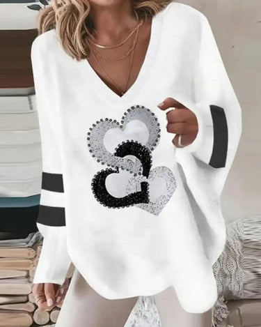 Arabella - Elegante maglione con scollo a V e maniche lunghe con stampa a cuore