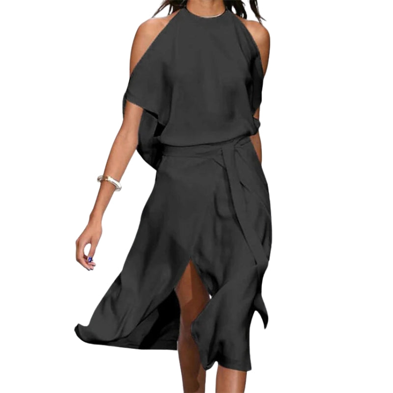 Aurelie – Abito con scollo all'americana e spalle scoperte e spacco laterale