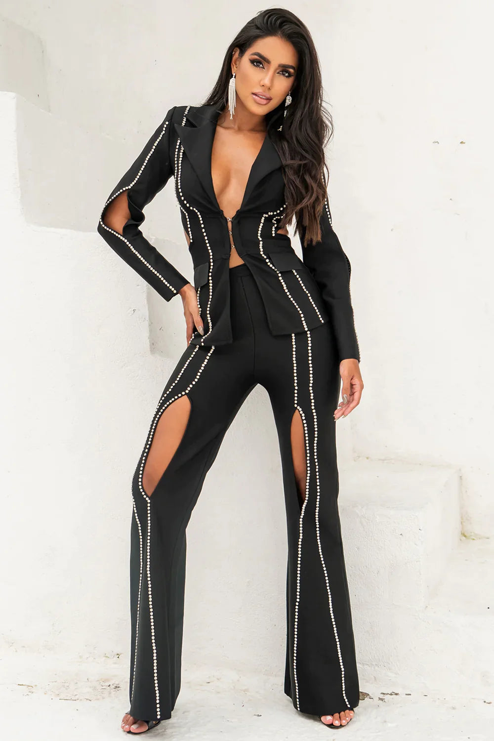 Ava – Completo composto da blazer elegante e pantaloni svasati con un audace design ritagliato