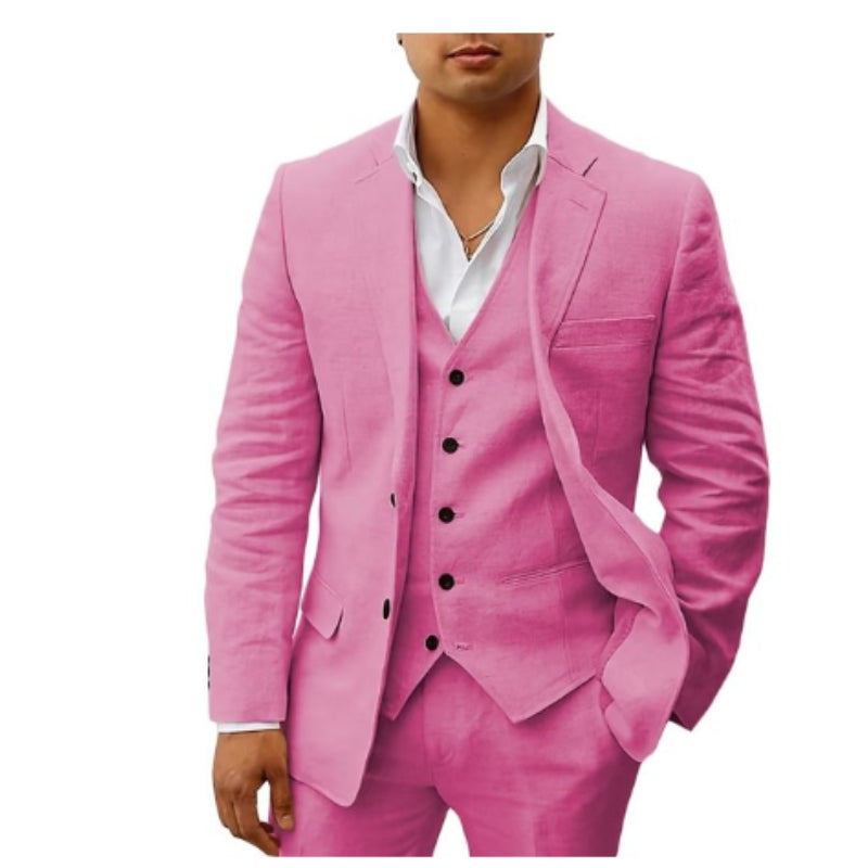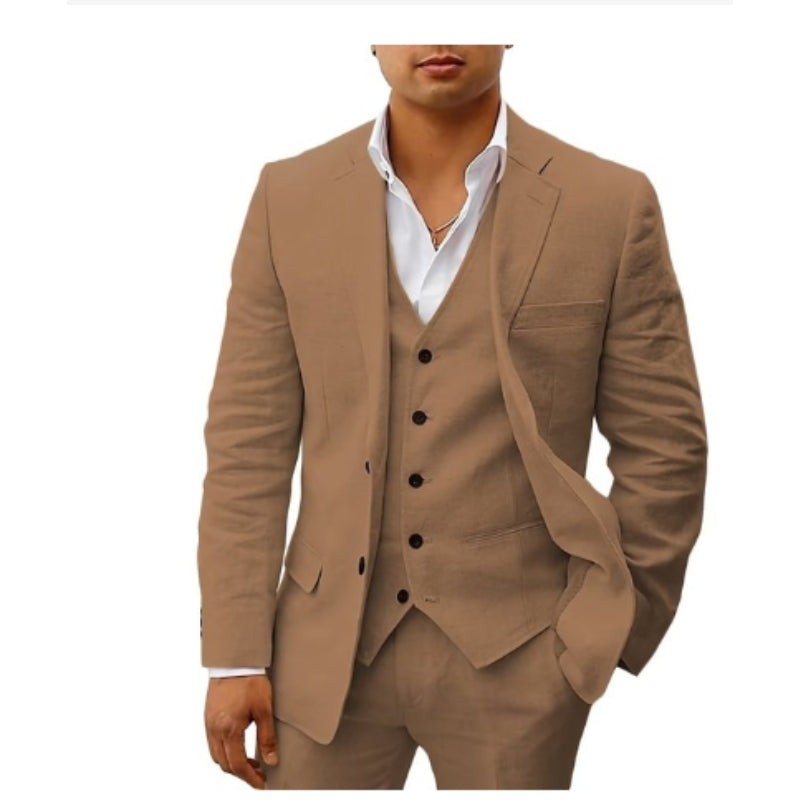 Questo completo da tre pezzi comprende un blazer a maniche lunghe, un gilet abbinato e pantaloni dalla vestibilità comoda. Il blazer offre una silhouette pulita con revers sobri che ne esaltano lo stile formale. Il gilet si abbina perfettamente al blazer, creando un look equilibrato e raffinato. I pantaloni dalla vestibilità comoda offrono ampia libertà di movimento senza rinunciare alla raffinatezza.