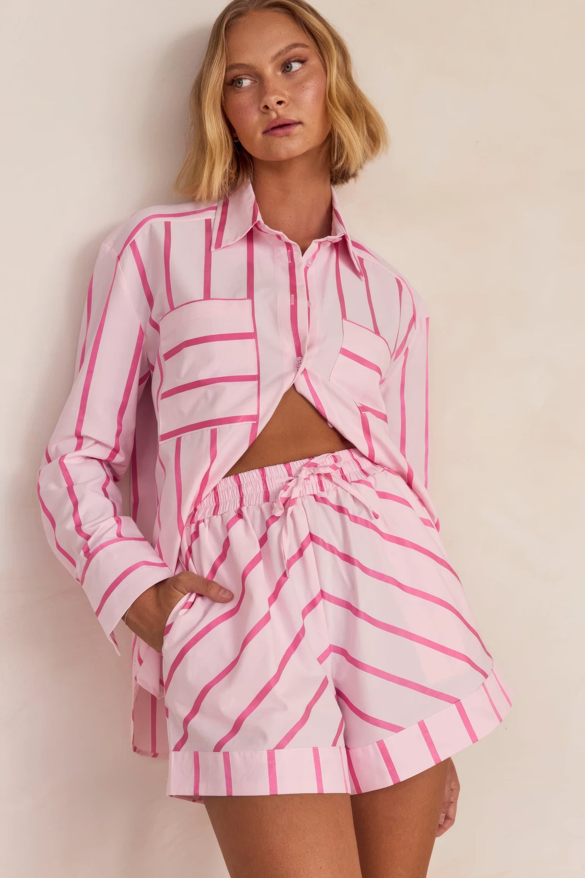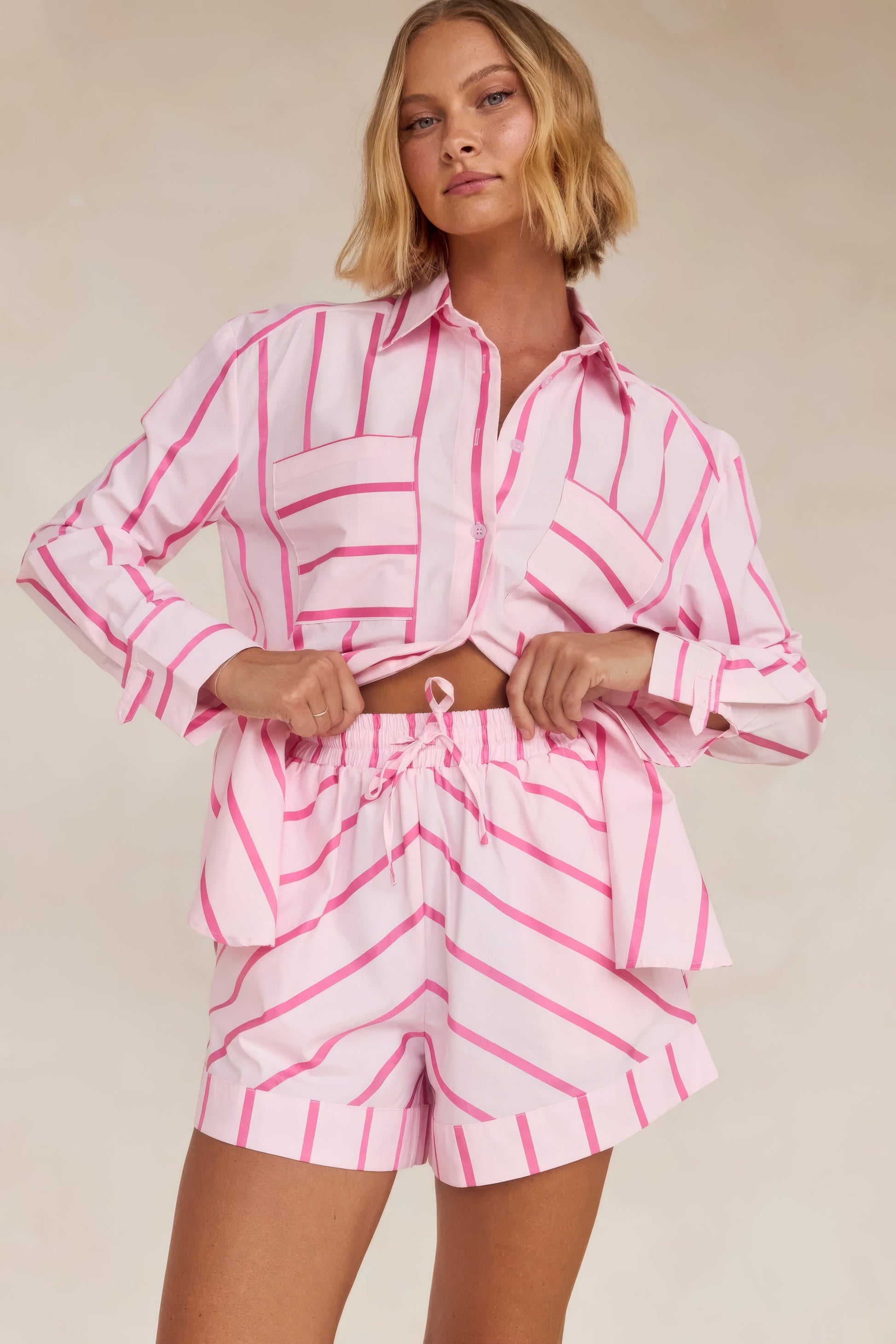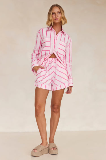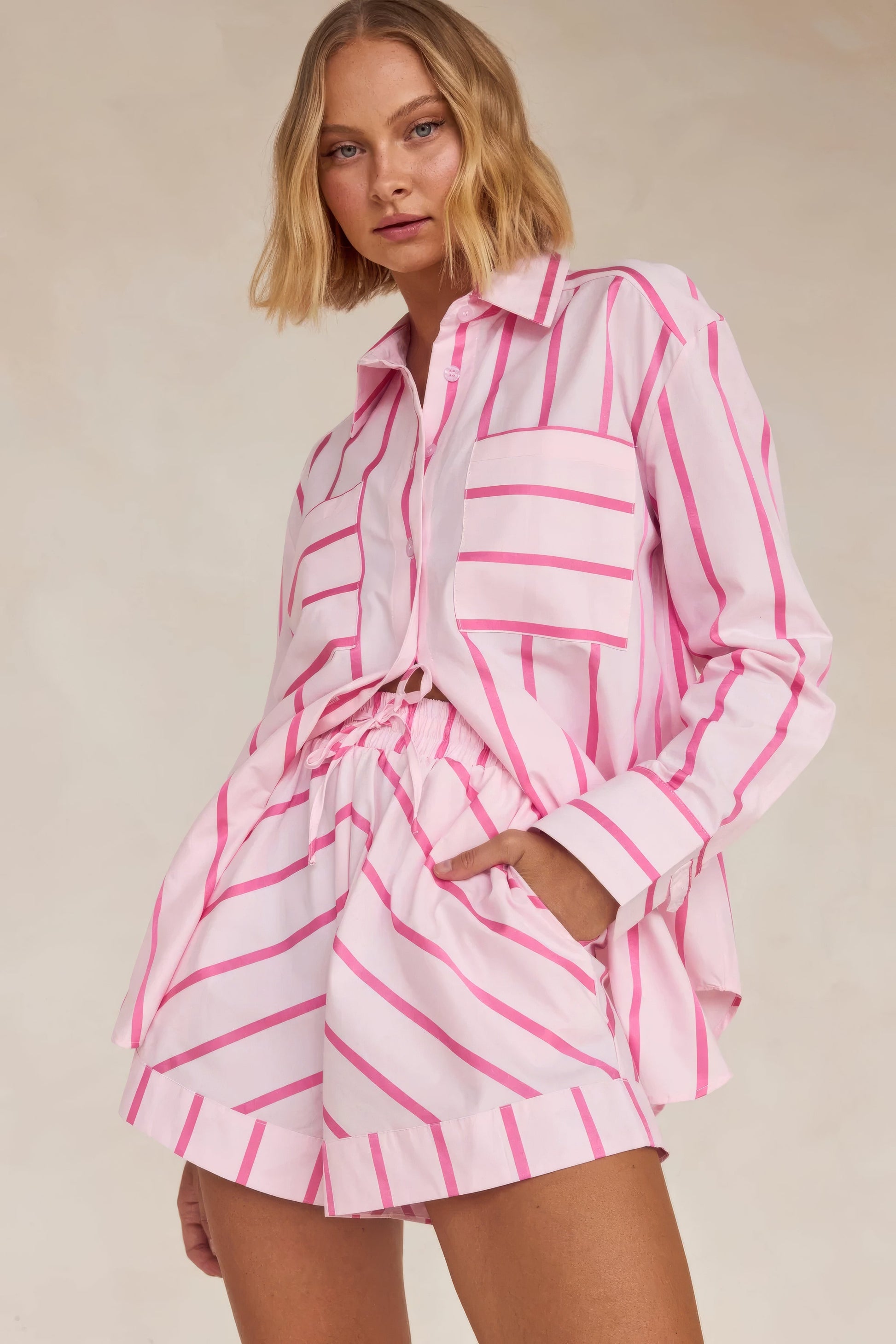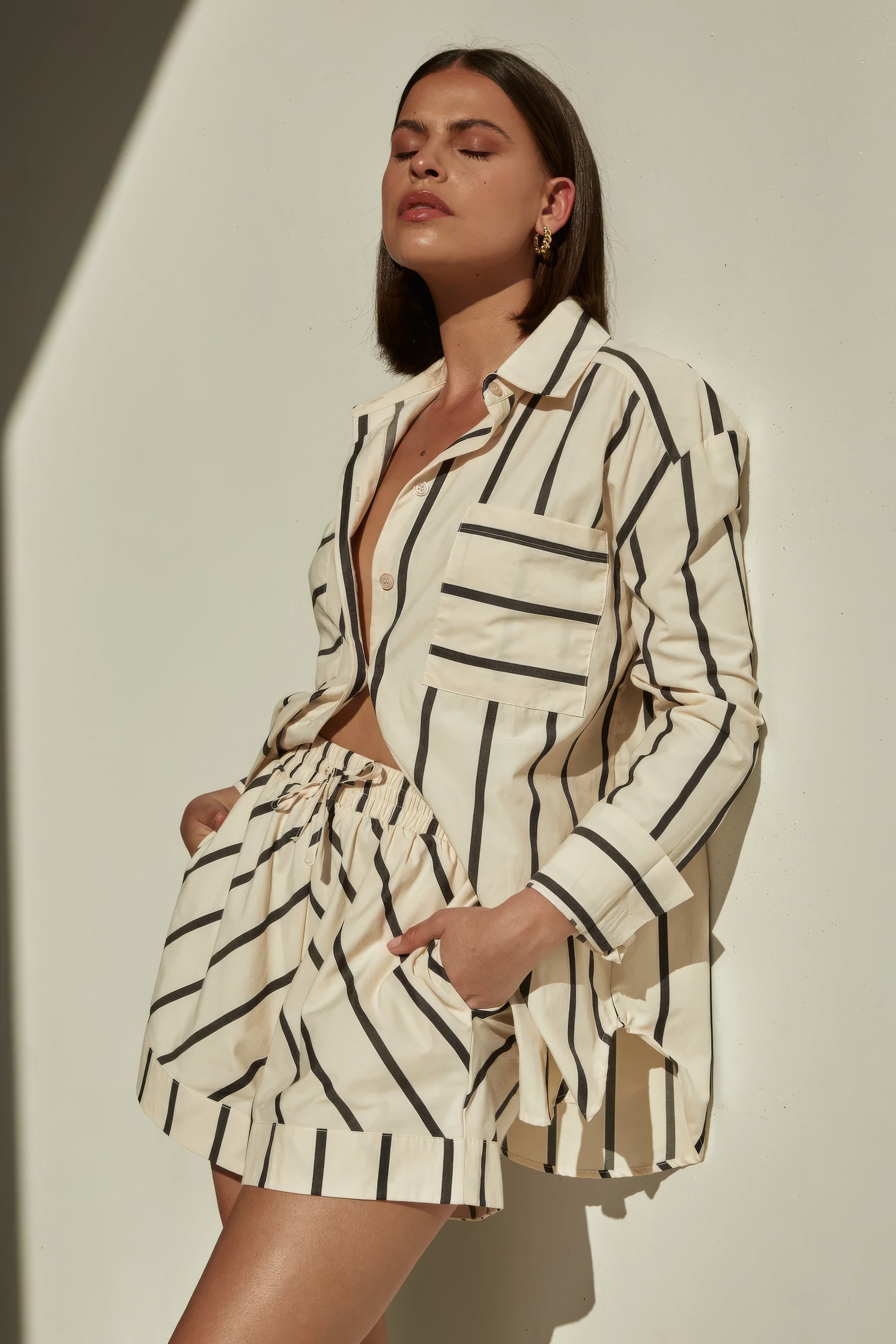 Il completo a righe Carmen è il perfetto mix di stile e comfort per le tue uscite casual. Con la sua silhouette a vita alta, questo elegante completo esalta le tue curve e impreziosisce il tuo look quotidiano. Progettato per adattarsi perfettamente alle giornate in spiaggia e alle occasioni informali, il completo Carmen è un must-have per il tuo guardaroba.