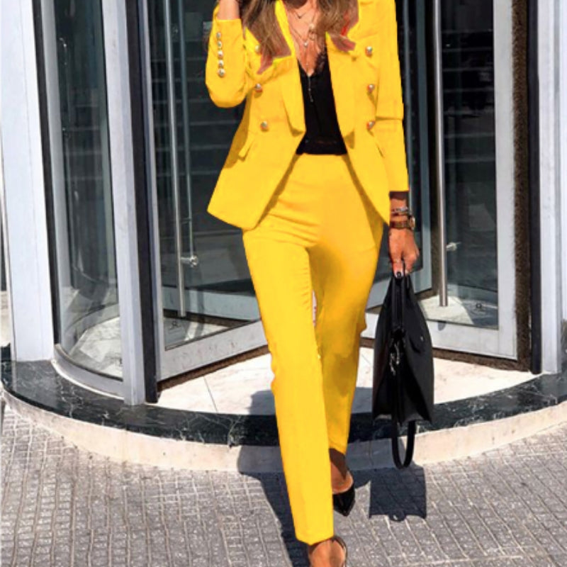 Clara – Elegante completo due pezzi con blazer a maniche lunghe e pantaloni slim fit