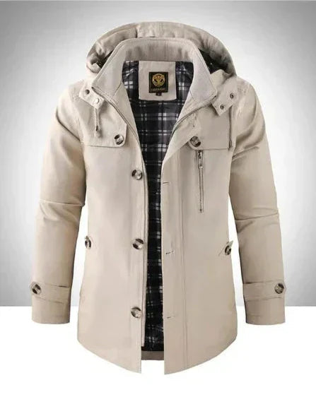 Darius - Giacca con cappuccio, guscio impermeabile e bottoni