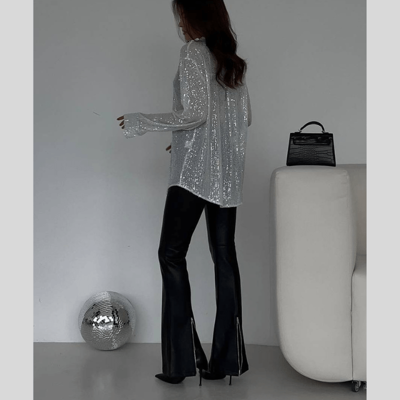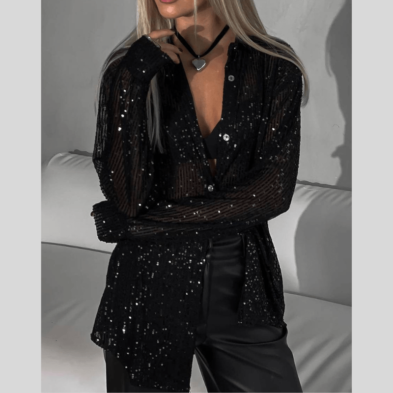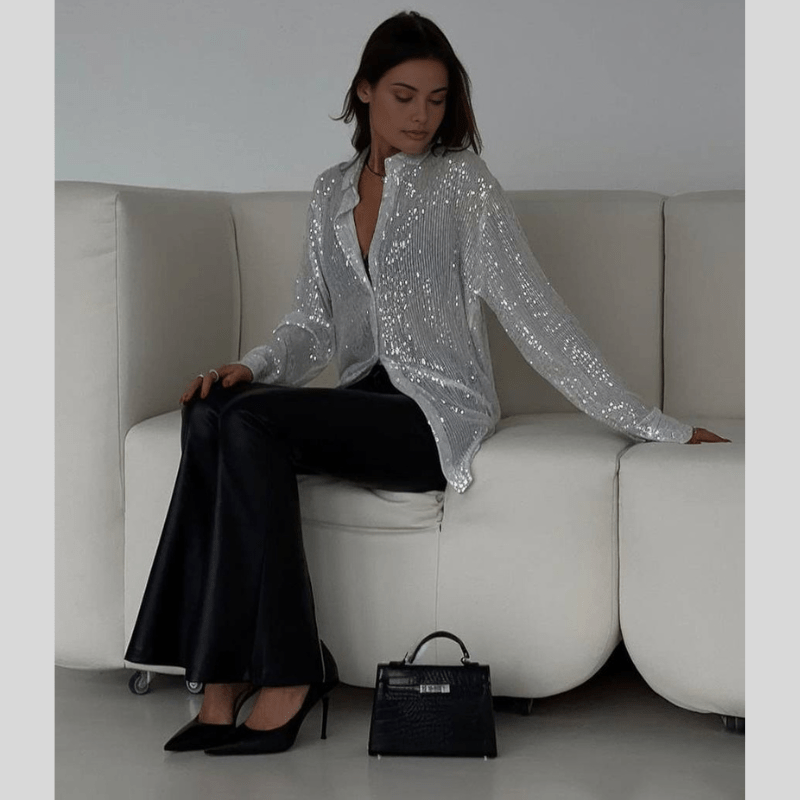 Questa camicia offre una vestibilità comoda che consente la massima libertà di movimento durante tutto il giorno. I suoi dettagli scintillanti aggiungono un tocco di raffinata brillantezza a qualsiasi outfit. Le ampie maniche lunghe le conferiscono un look moderno e casual. Il suo design unisce comfort e stile accattivante.