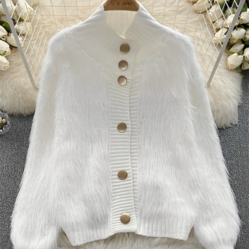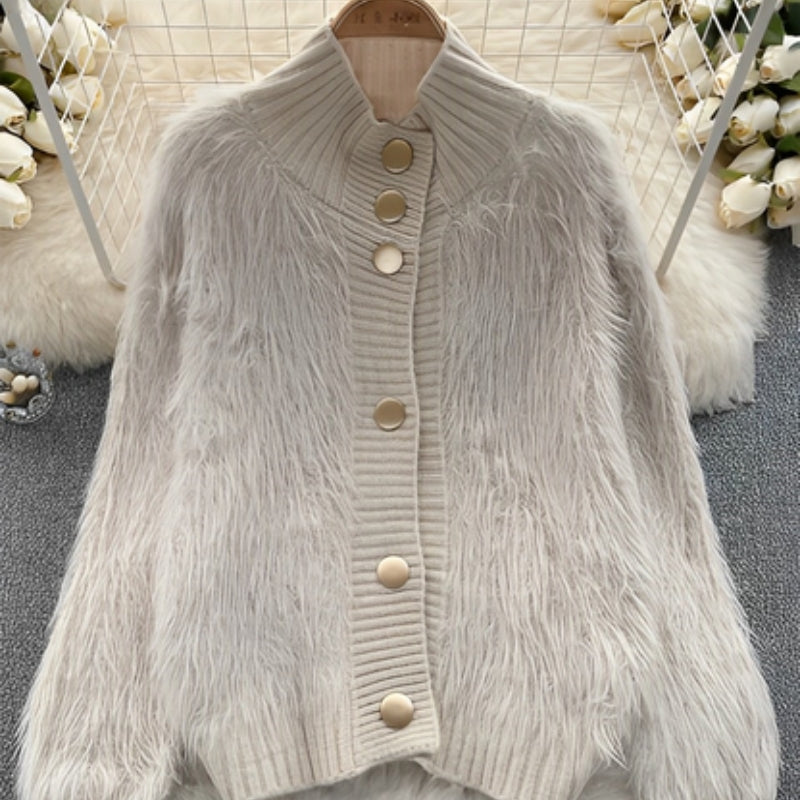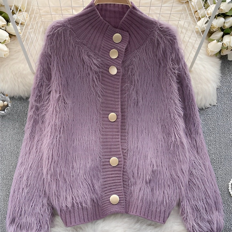 Diana – Elegante cardigan soffice con colletto a coste e bottoni sul davanti