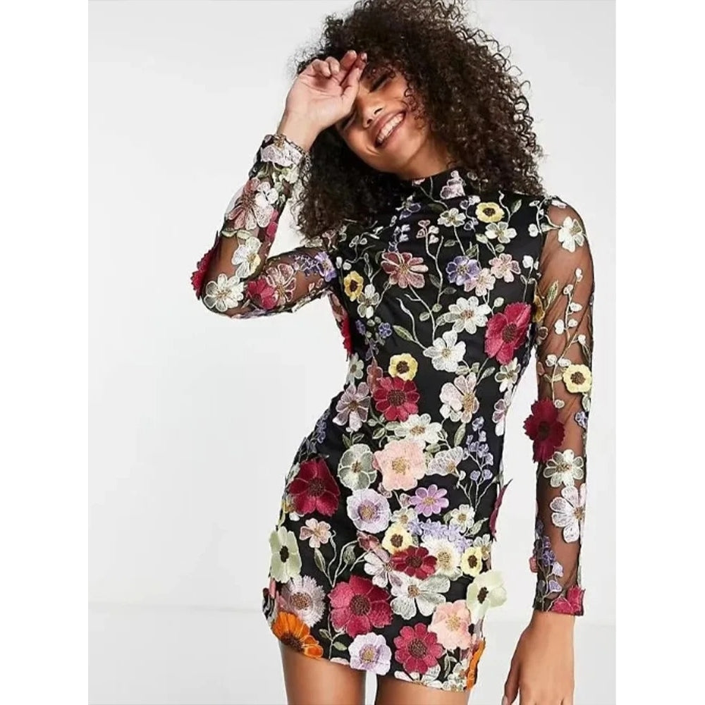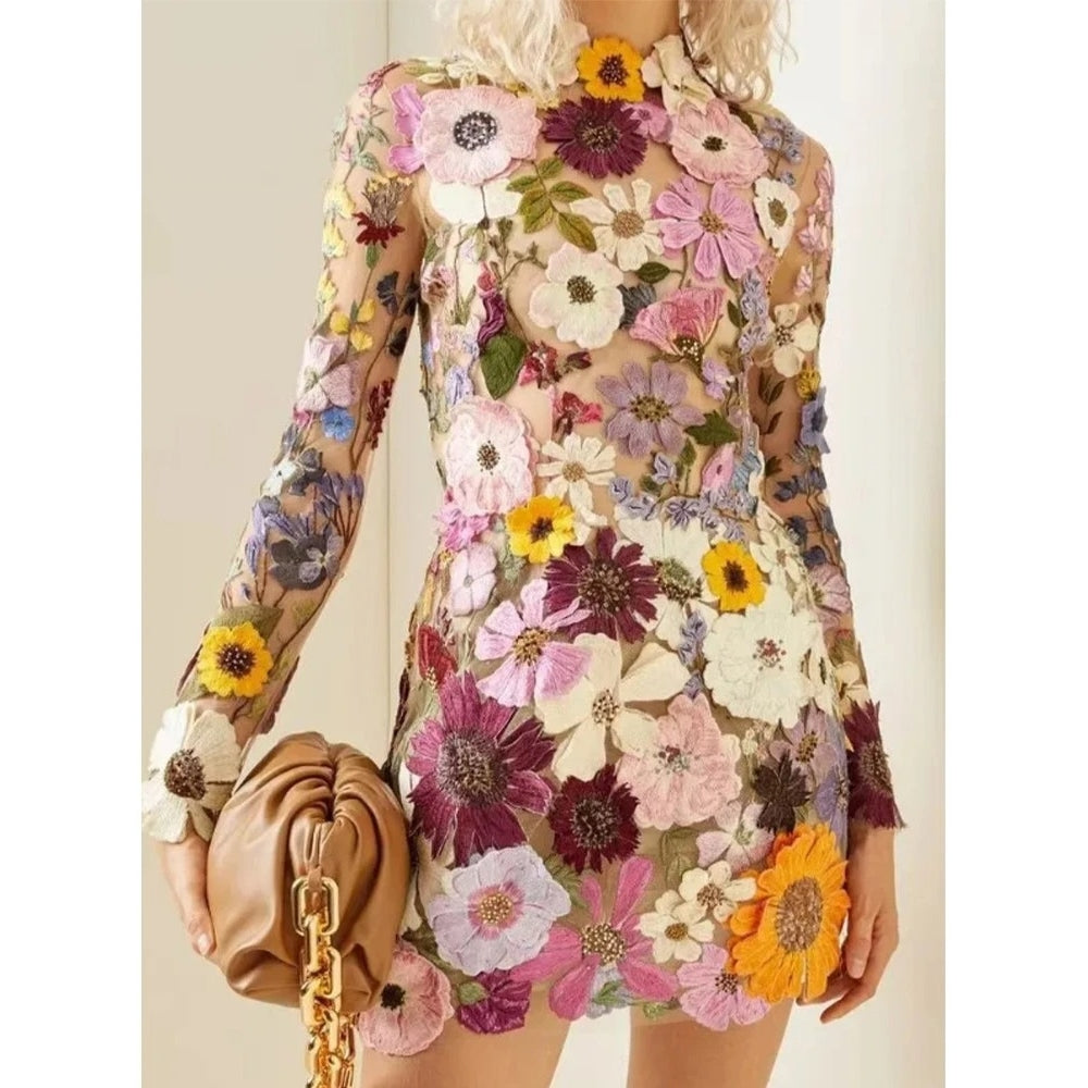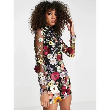 Diana - Elegante mini abito con collo alto e maniche lunghe per un fascino senza tempo