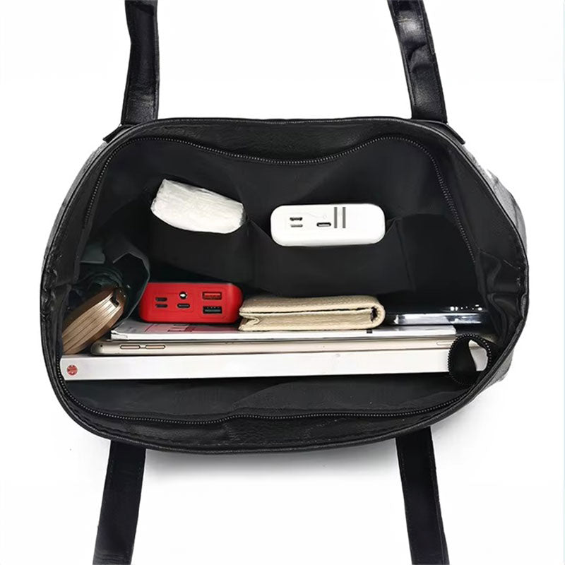 L'interno spazioso può contenere facilmente libri, piccoli dispositivi e accessori personali. Le tasche interne mantengono tutto organizzato per un accesso rapido e semplice. Due robuste maniglie consentono di portare la borsa a spalla comodamente per tutto il giorno. Il suo design equilibrato è adatto sia per occasioni informali che professionali.