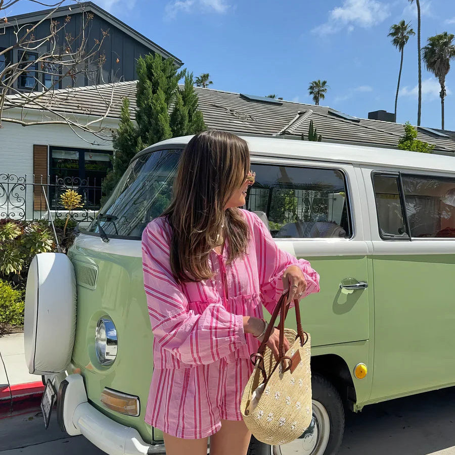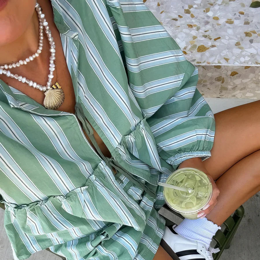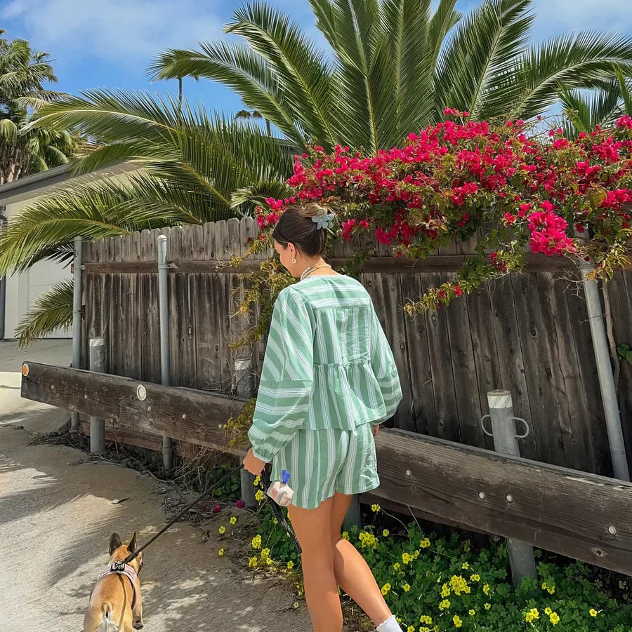 Il completo Eliza unisce comfort ed eleganza, ideale per tutte le tue uscite casual. Composto da un top a maniche lunghe e da pantaloncini a gamba larga, offre una silhouette elegante e una grande libertà di movimento. Che tu stia andando a un brunch informale o a una giornata di relax, questo completo è perfetto per te. Il suo design semplice ed elegante ti assicura un look impeccabile.