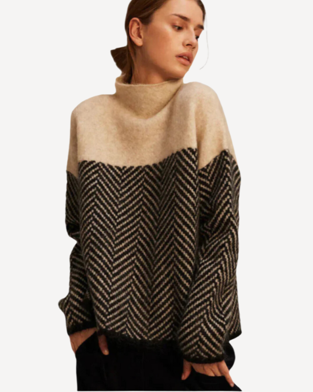 Elsi - Elegante maglione a collo alto a maniche lunghe con motivo chic