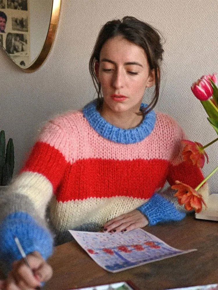 Emara - Cardigan caldo a righe dallo stile disinvolto