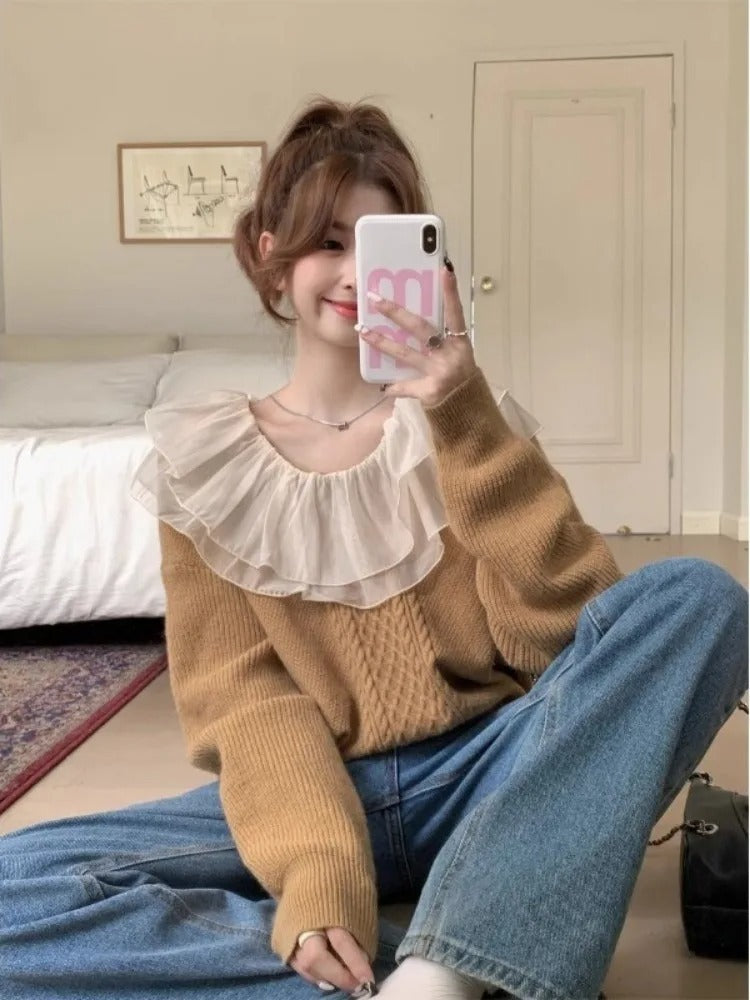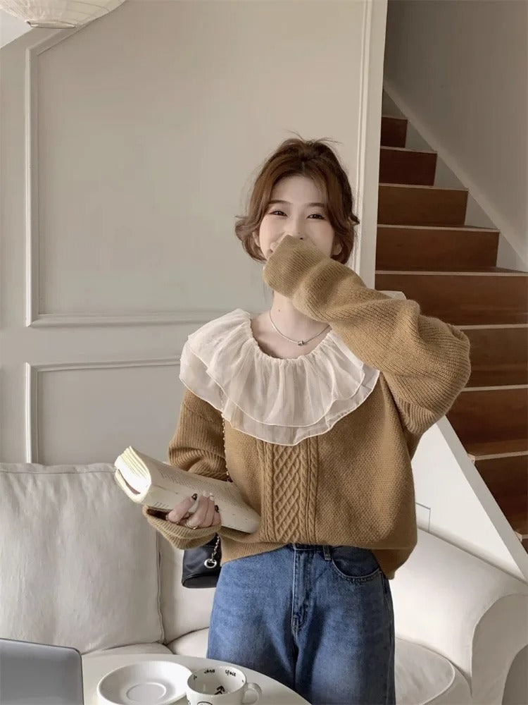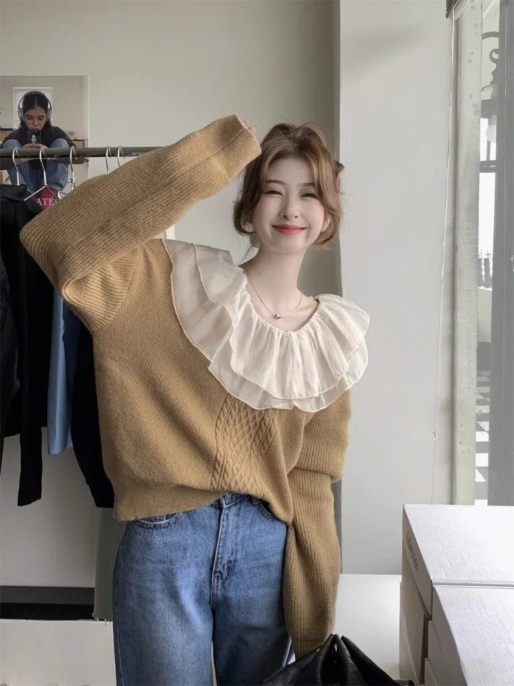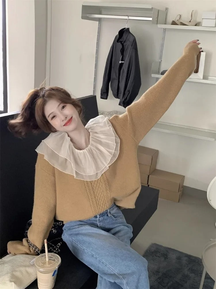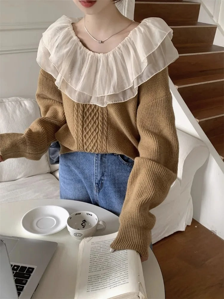 Emilia - Maglione moderno a maniche lunghe con motivo arricciato