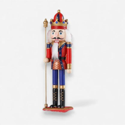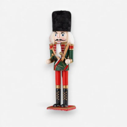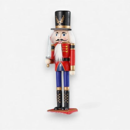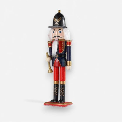 Ce casse-noisette présente des détails soignés sur l’uniforme et le visage. Il est conçu pour être placé sur une table ou un bureau.