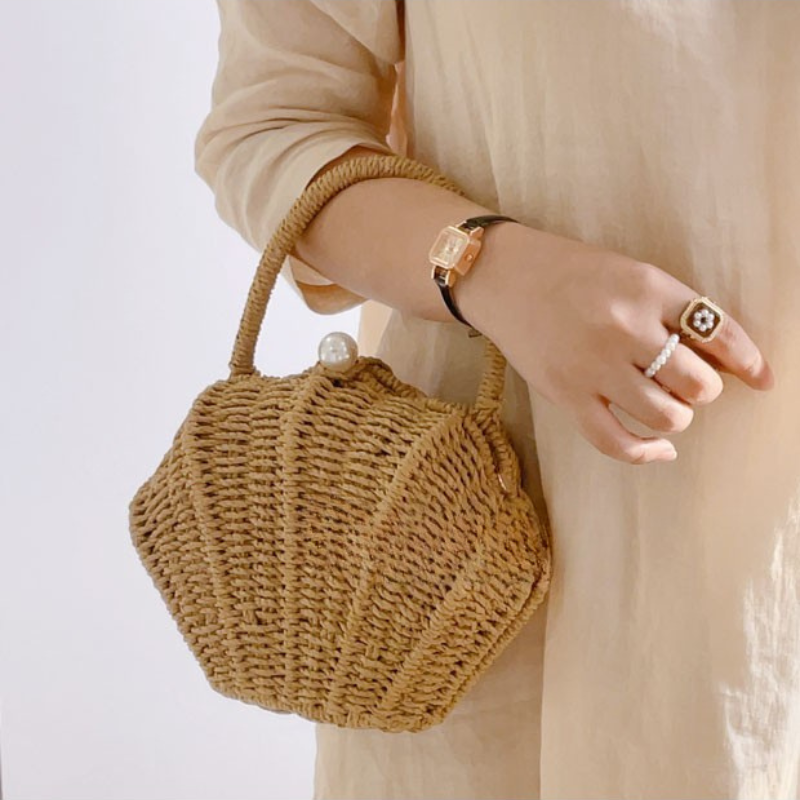 Ce sac à main en raphia tressé combine charme naturel et design pratique. La bandoulière chaîne permet un transport facile, tandis que sa forme structurée garde vos affaires bien organisées. Parfait pour les sorties décontractées ou les événements estivaux.