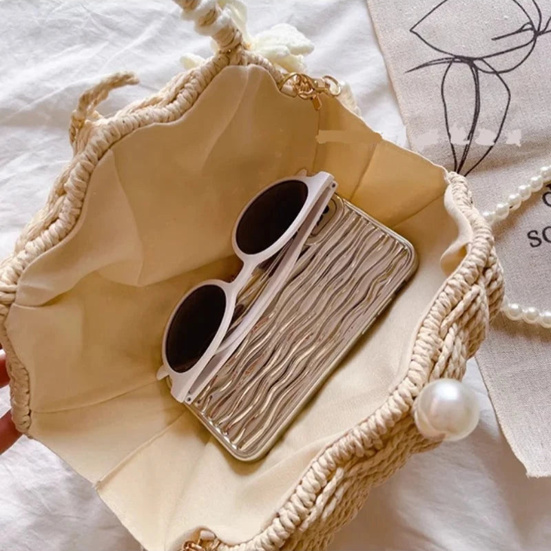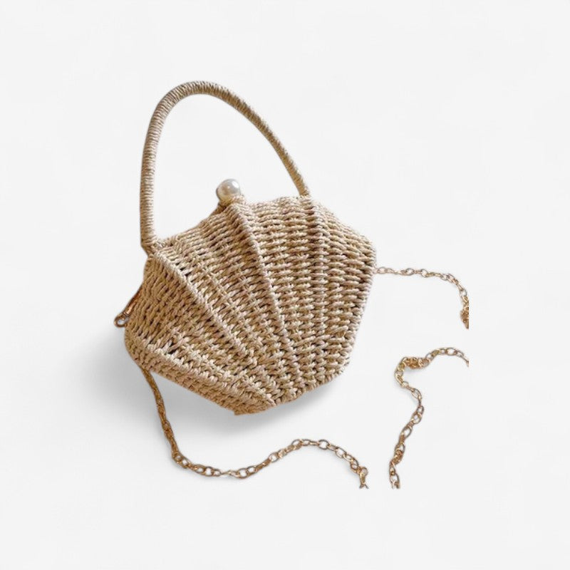 Lillian – Sac à main en raphia tressé avec poignée et bandoulière chaîne