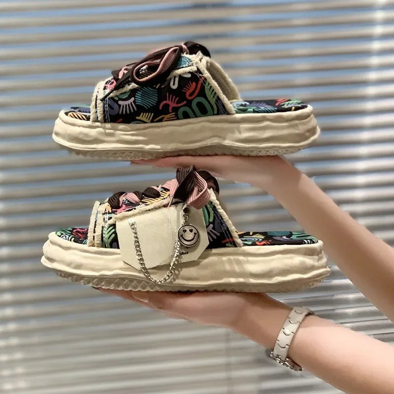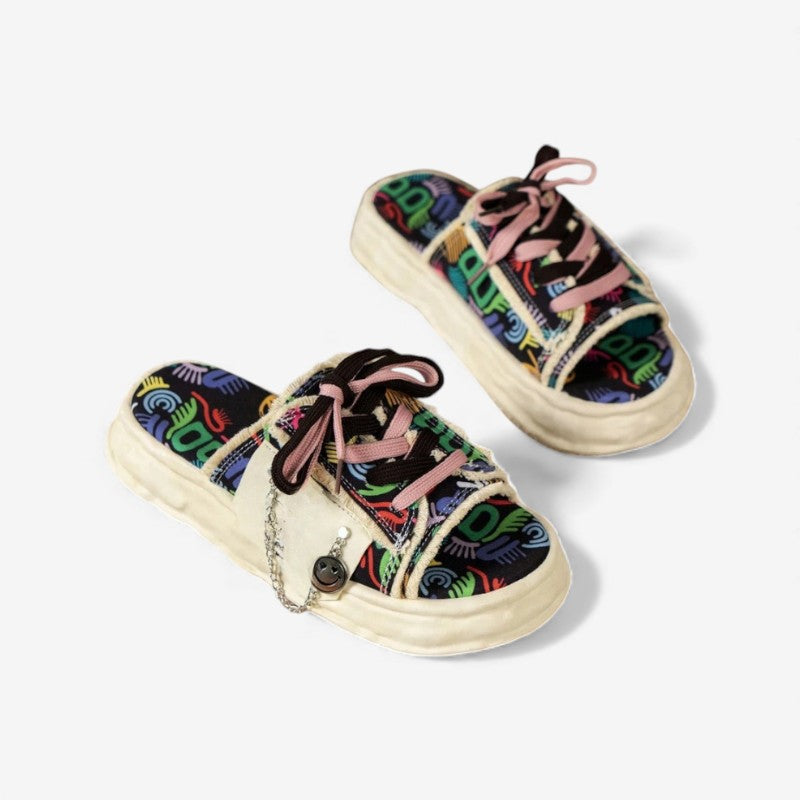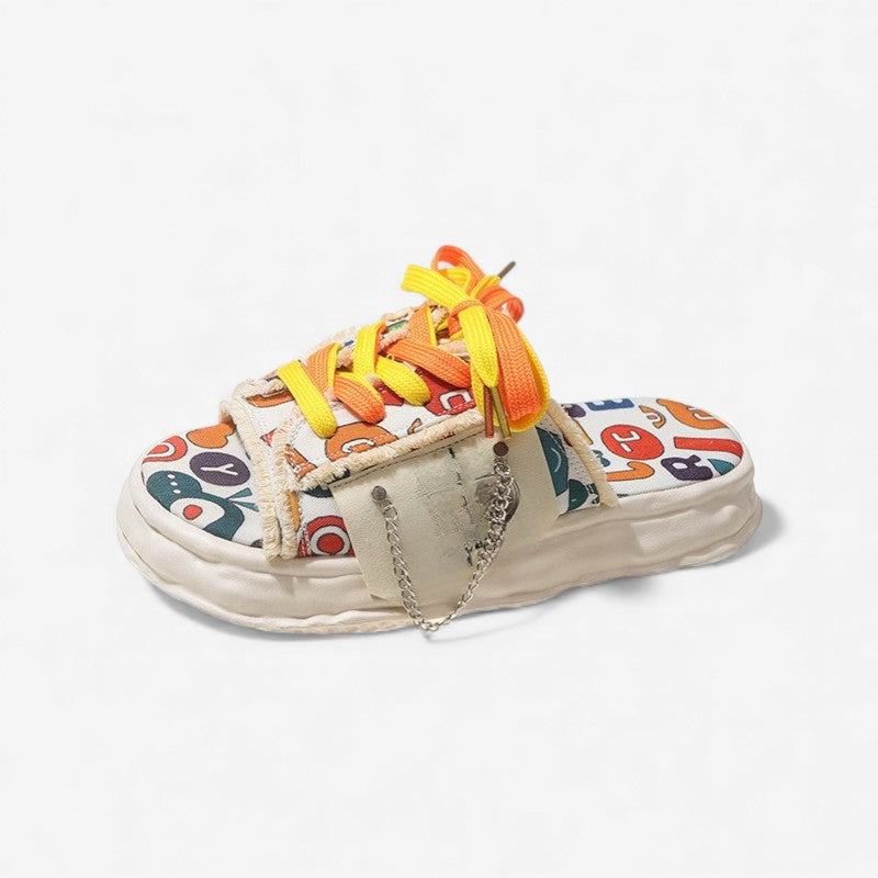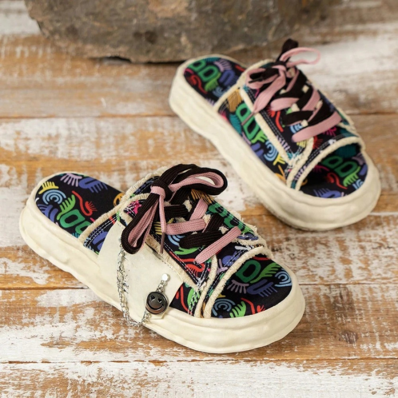 Liora – Chaussons à semelle plate imprimés et lacets, bout rond