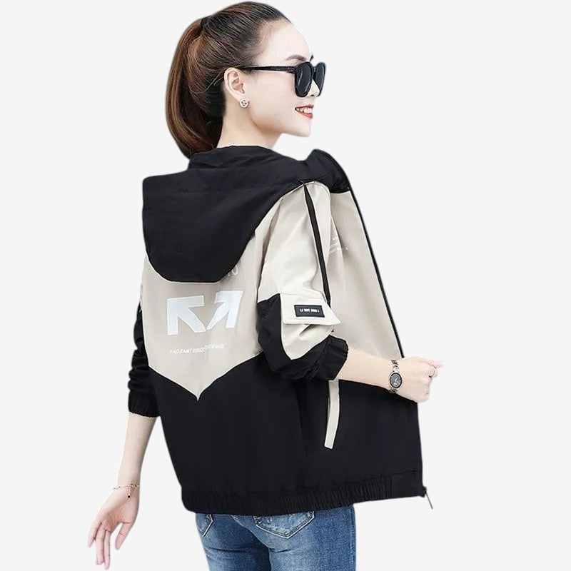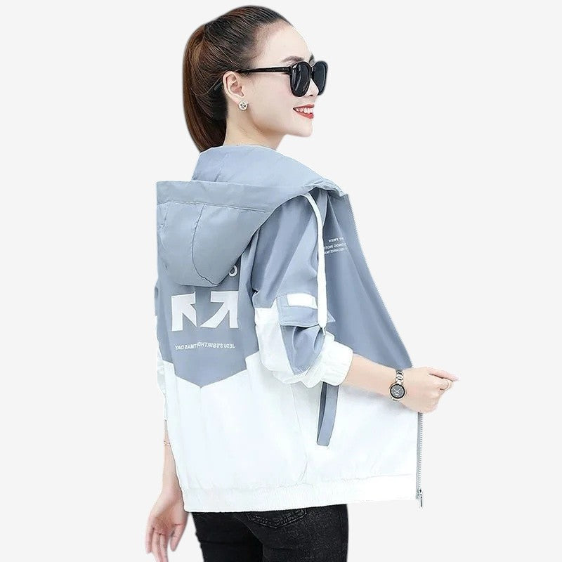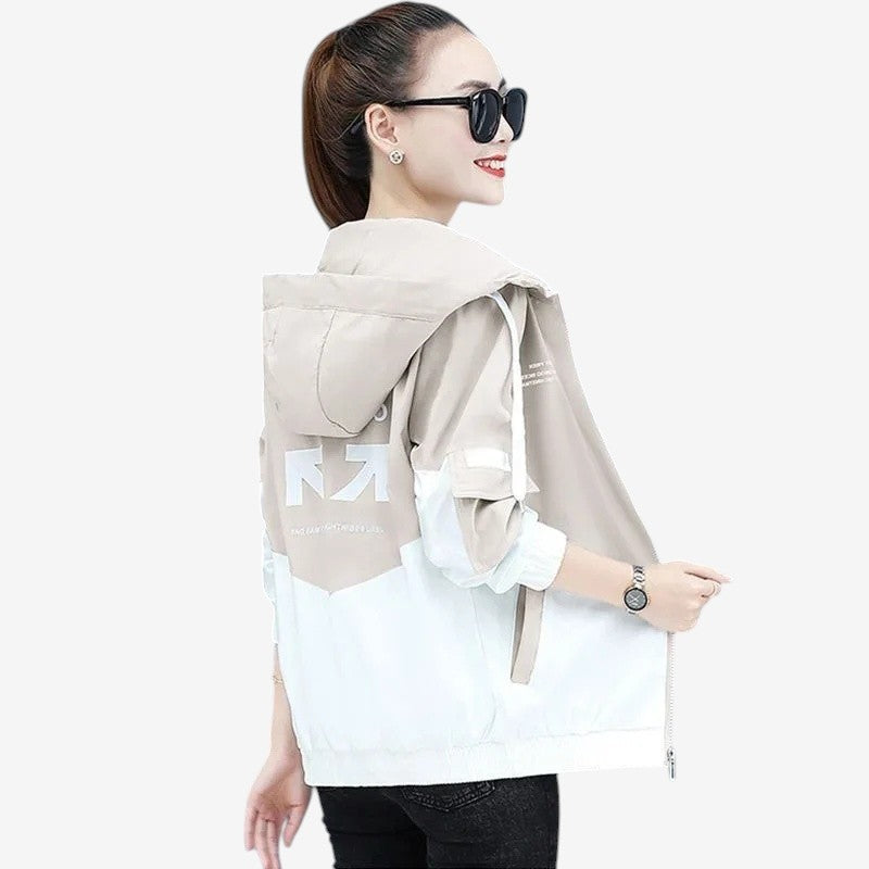 Cette veste présente une capuche et des manches longues avec une coupe ample. Des poches latérales sont incluses et les panneaux ont une surface lisse.