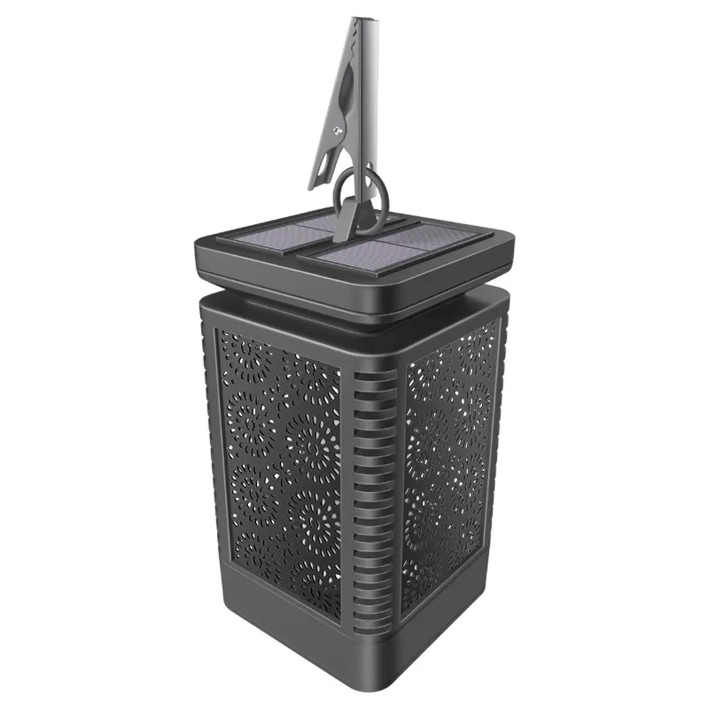 Cette magnifique lanterne de jardin diffuse une lumière flamboyante. Elle donne l'impression d'un véritable feu. En réalité, la lampe fonctionne grâce à l'énergie solaire produite par le panneau situé sur le dessus.