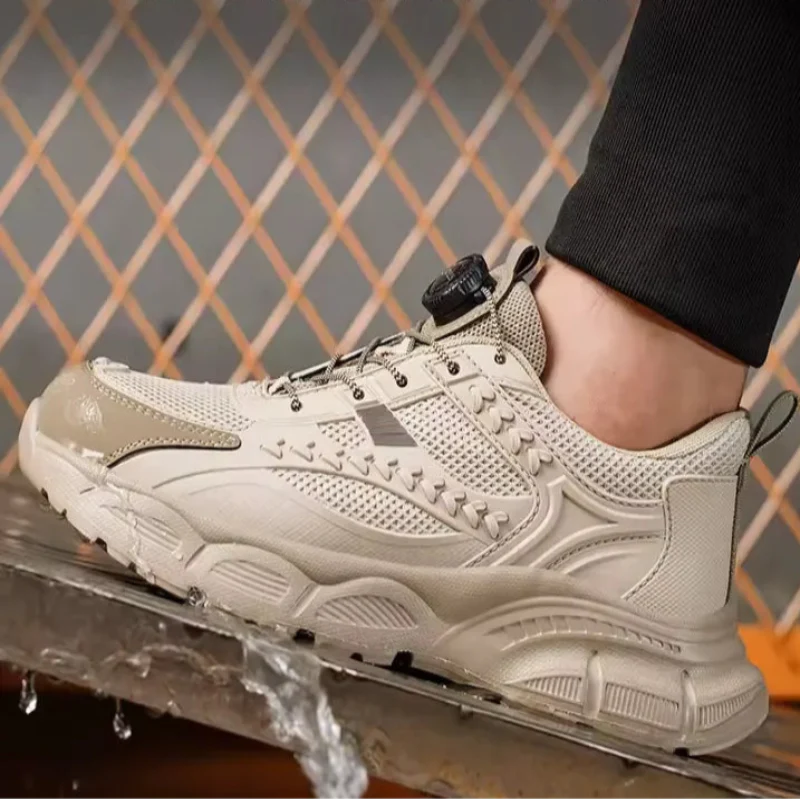 Ces baskets ont un bout rond et une semelle épaisse avec un système de fermeture à bouton rotatif. La structure est conçue pour couvrir le pied.