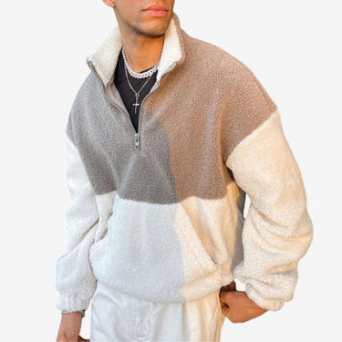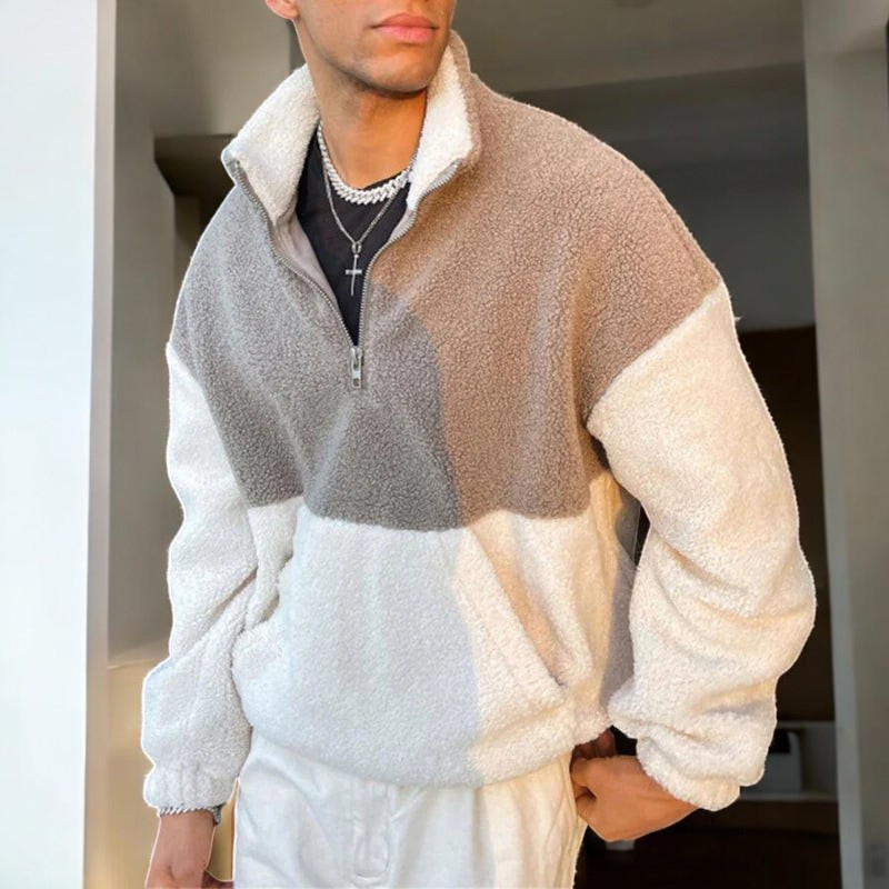 Lysen – Pull ample à col montant en polaire avec poche et manches longues