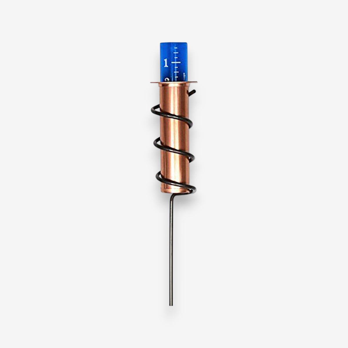 Cette jauge possède un tube vertical soutenu par un simple support. Sa forme structurée permet une installation dans les pelouses, jardins et espaces aménagés.